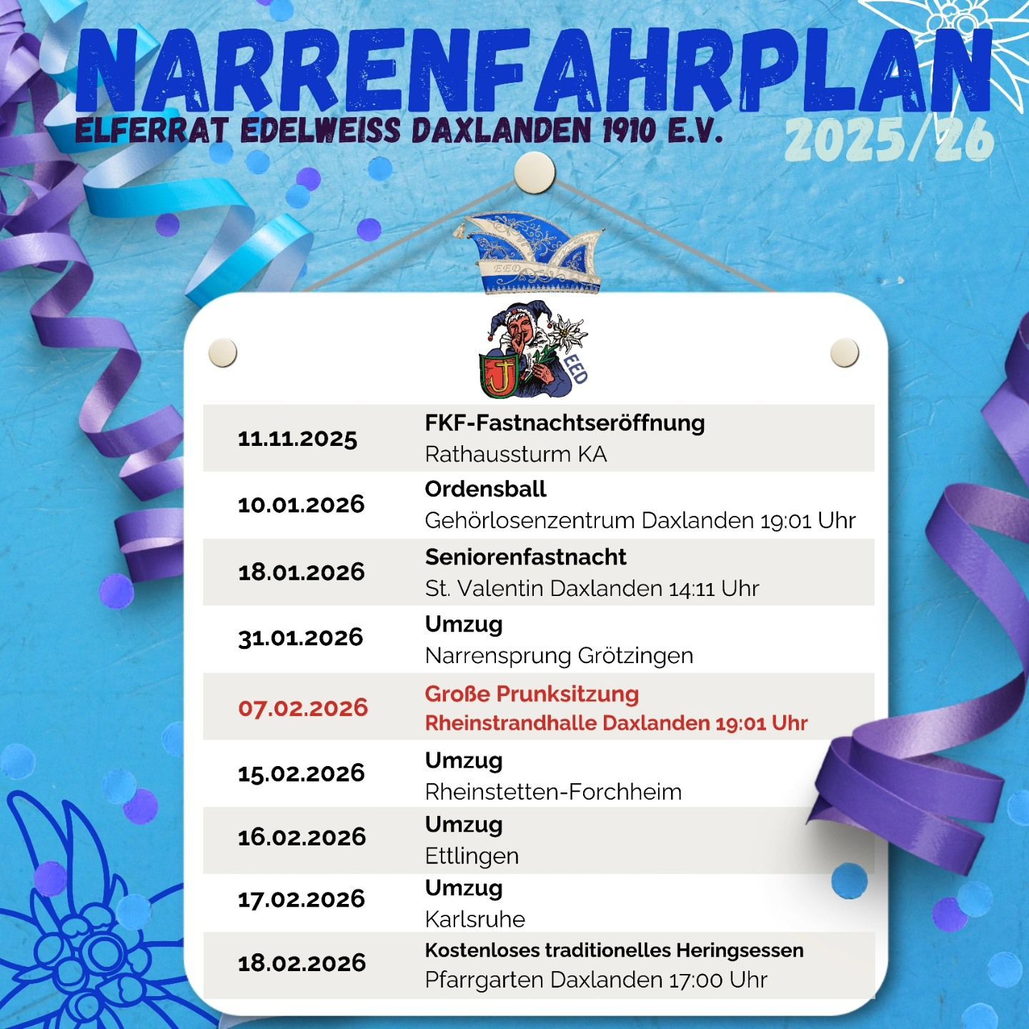 die 5.te Jahreszeit ist in vollem Gange- anbei unser Narrenfahrplan